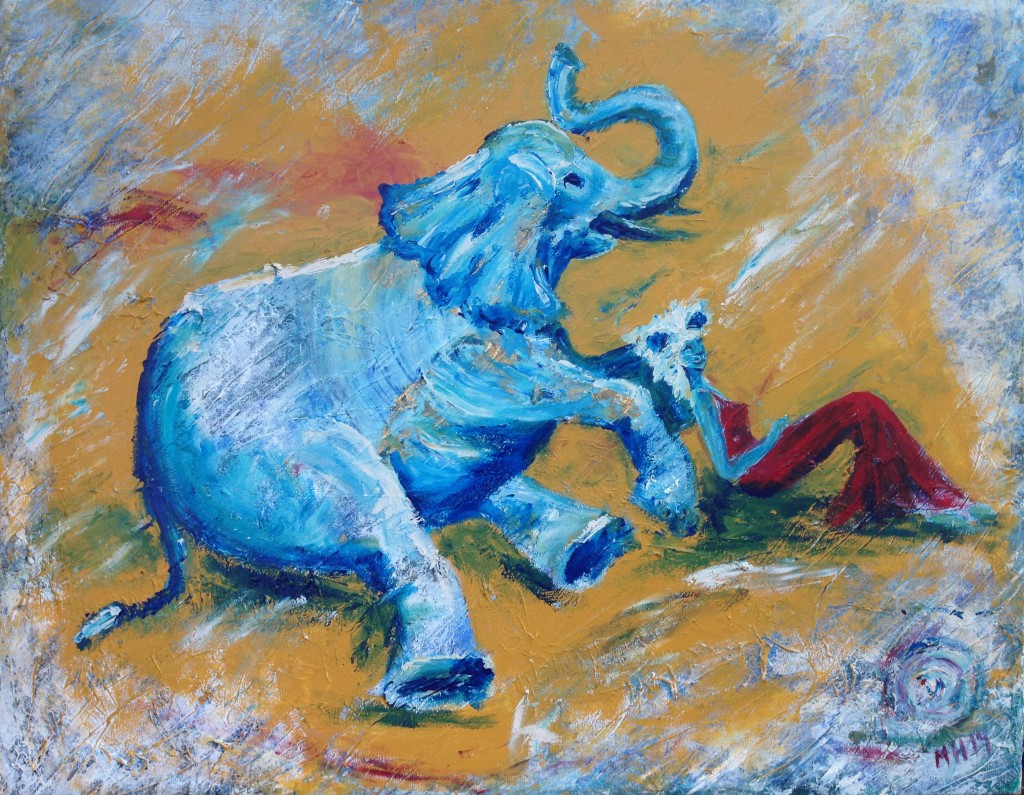 The blue elephant is a protector of the home and he is holding the Lioness Lady in a loving embrace of protection.