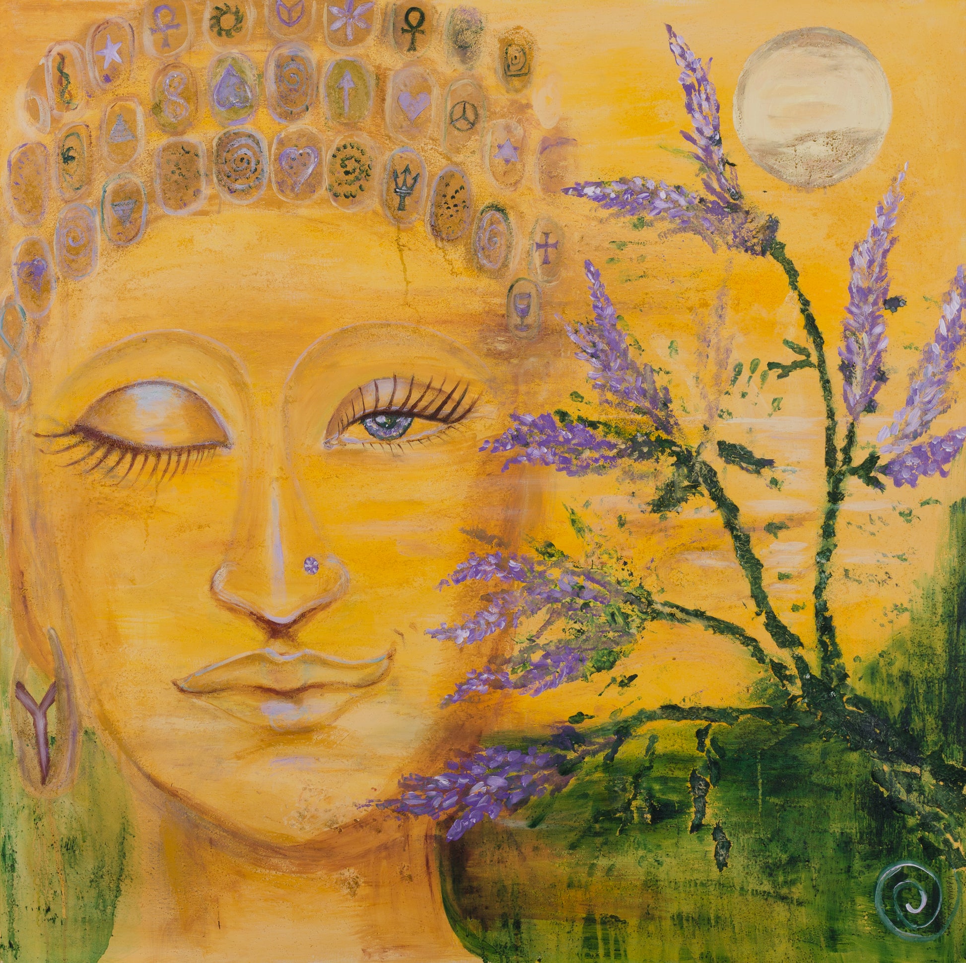 This is a female Buddha who appeared to me in a meditation flashing her eye at me…telling me that the female yin energy is rising again…the energy that contains and support everything. Buddhina is gracefully aware of both the inner world and is seeding her energy in the outer world….come with me she whispers….