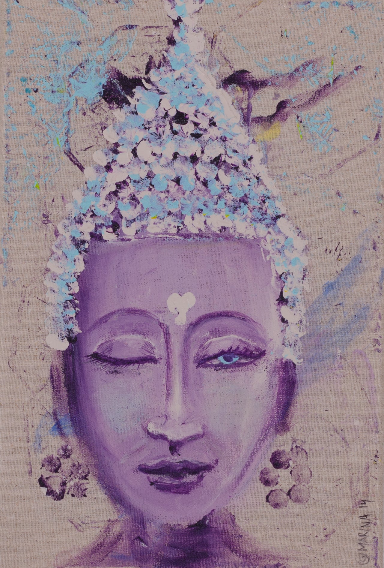 Buddhina Blue Acrylic on canvas, painted with hands and brush and energetically encoded with compassion and tenderness. 20×30 cm