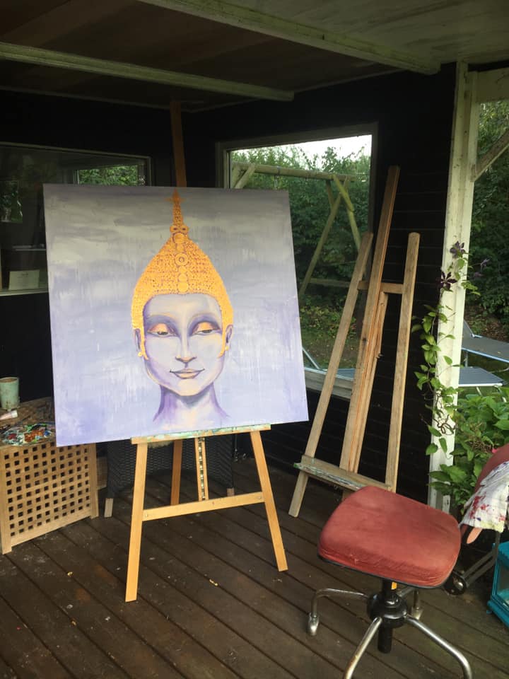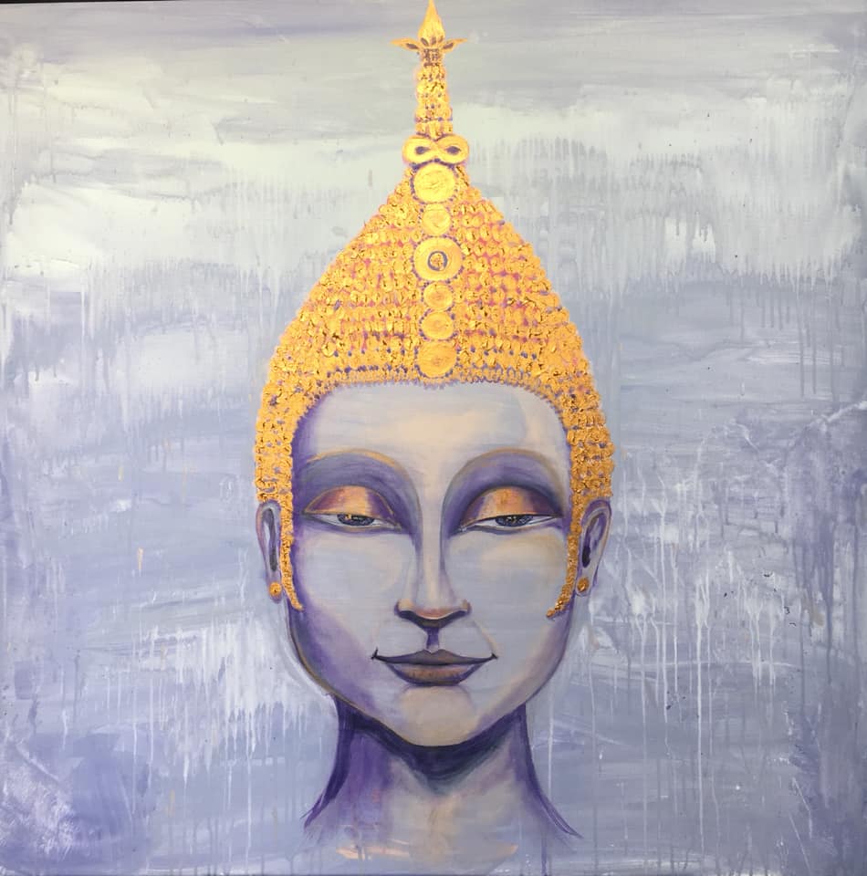 Buddhina – personalized – she is painted with acrylics on canvas with hands and brushes and is energetically encoded with serenity, pure love and balance.