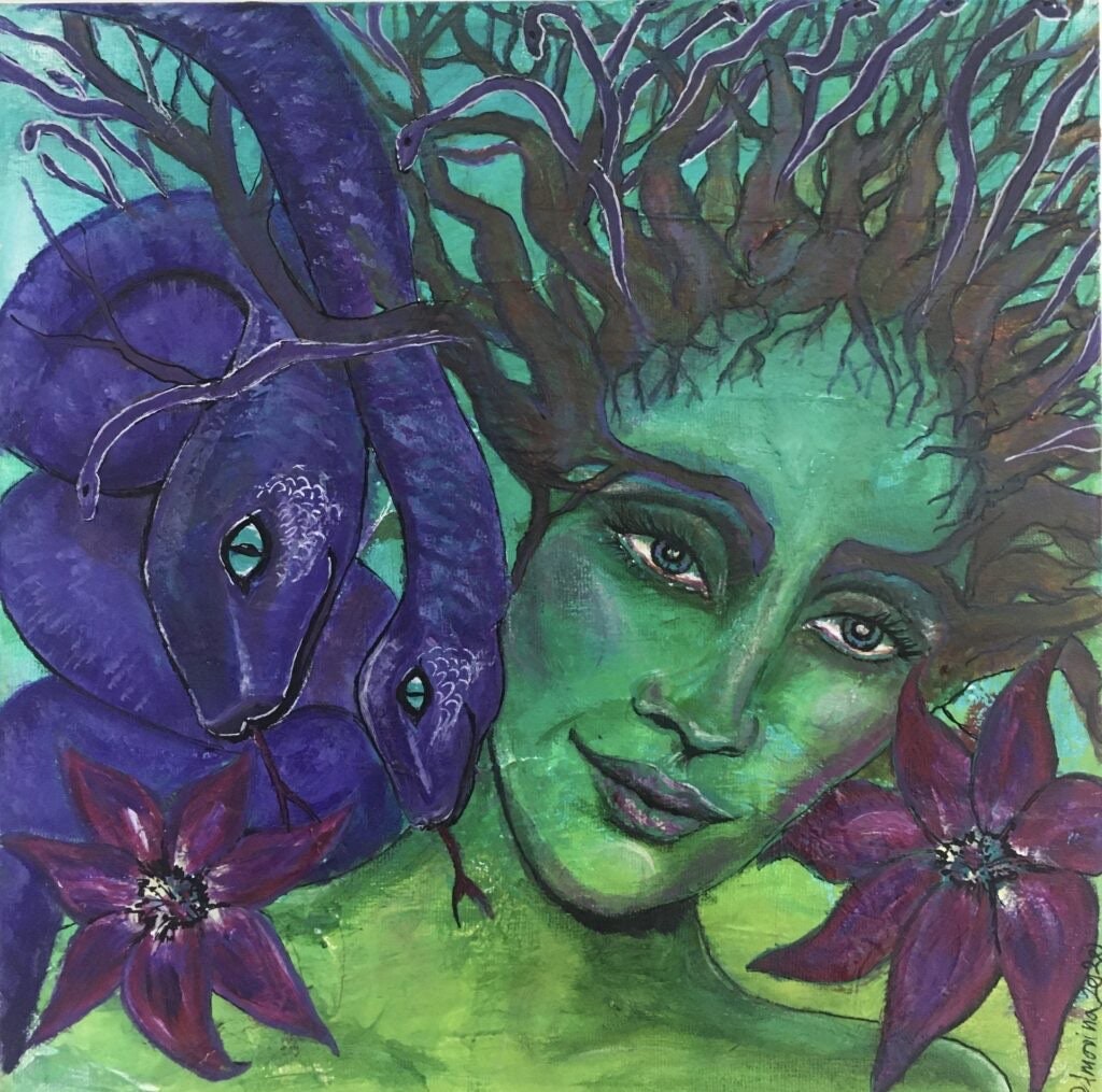Art Ayana is an Earth Goddess (a Deva) of the deep forest. She is the mother, nurturer, and protector of all life in the forest. She is gentle and wise, but fierce, fair, and powerful when protecting her kin and Gaia. She is deeply connected to the wisdom of the Sacred Crystalline Snake and the potent magic of the deep forest. It is said that all new wisdom snakes are born out of her hair only to dive deep into the Earth and connect with Gaia’s Crystal Grids and fertilize them with new frequency and knowledge. Ayana will give you deep-rooted peace and activate a balanced power to protect your own inner borders.