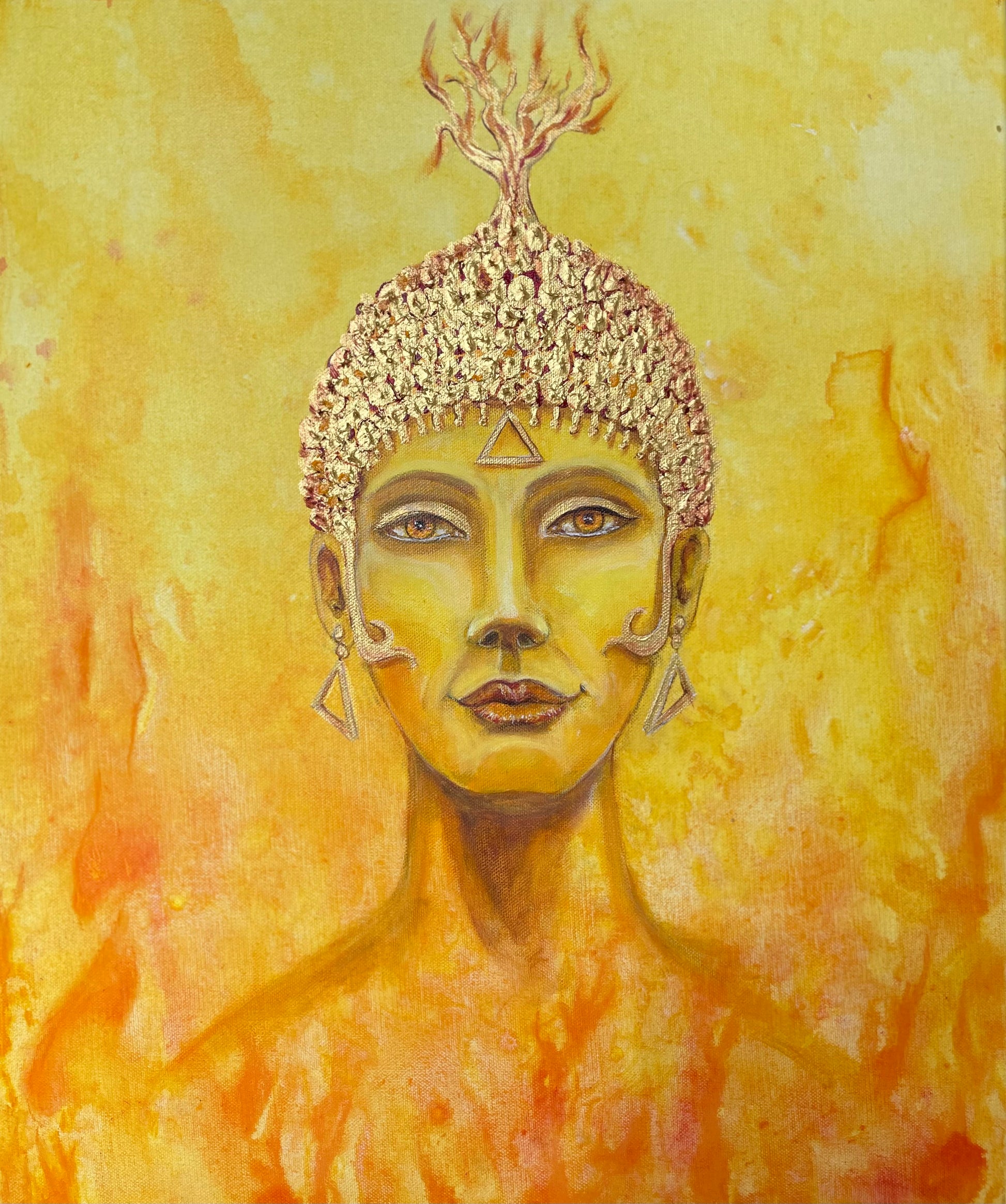A deep meditation into the fire element brought this fire elementrix out of the flames. She will strengthen your inner flames and breathe into your creative power, your action power, your life force and your passionate fire.