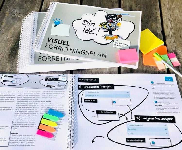 I arbejdsbogen VISUEL FORRETNINGSPLAN bliver du taget i hånden i et trin for trin forløb og ender med en gennemarbejdet forretningsplan.