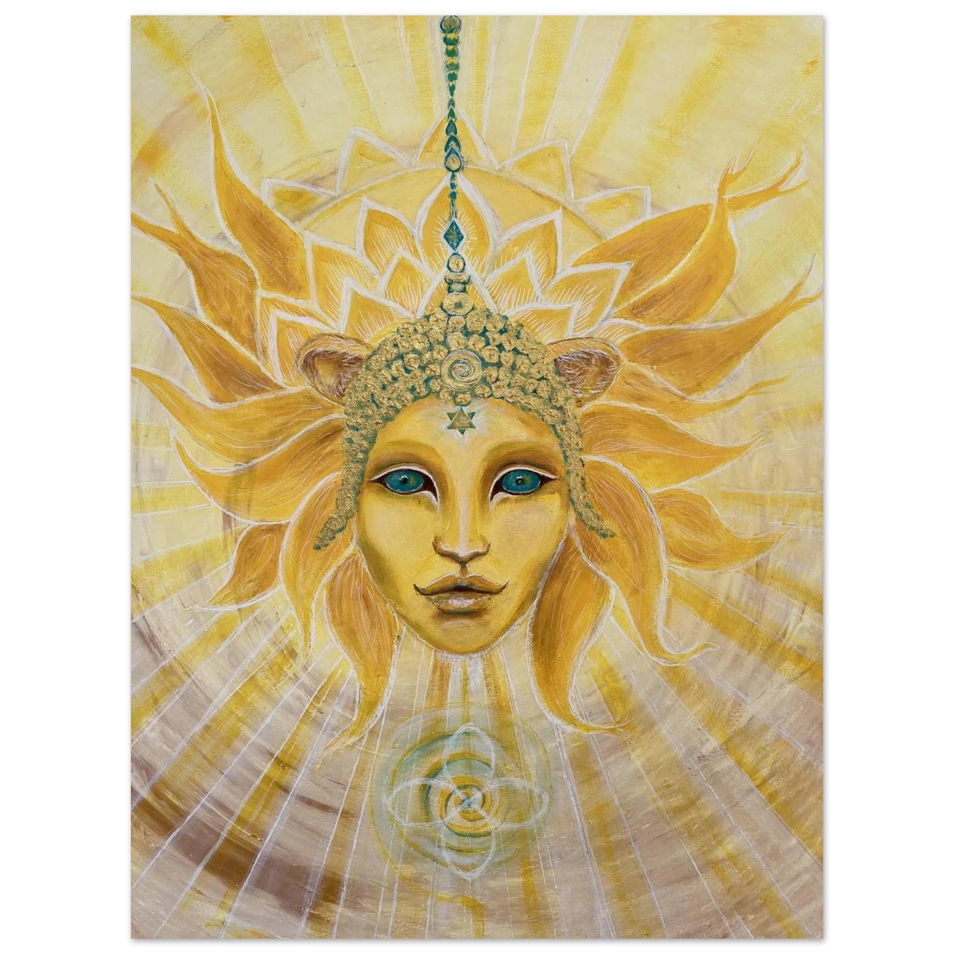 When I started working on this painting I thought I was creating the sun Solaris… but during the creation process came the words the Sun behind the Sun… Sirius… and I had a lot of Lion beings around me in my inner sight! So there she entered the canvas and they told me SHE is the Lionsgate … so that is what I named the painting.