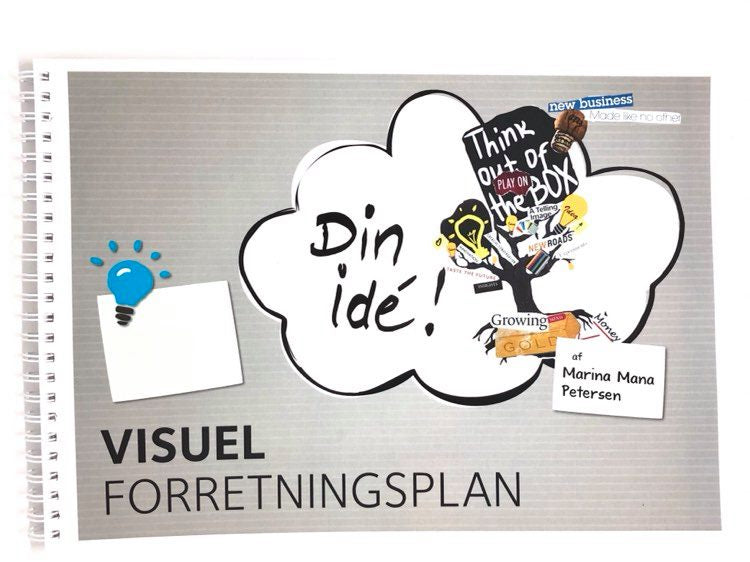 Arbejdsbogen VISUEL FORRETNINGSPLAN findes på dansk og engelsk. Bogen indeholder 69 sider trykt på kraftigt papir i A4 format. Forfatter Marina Mana Petersen, udgivet af Creatrix Innovation 2020.
